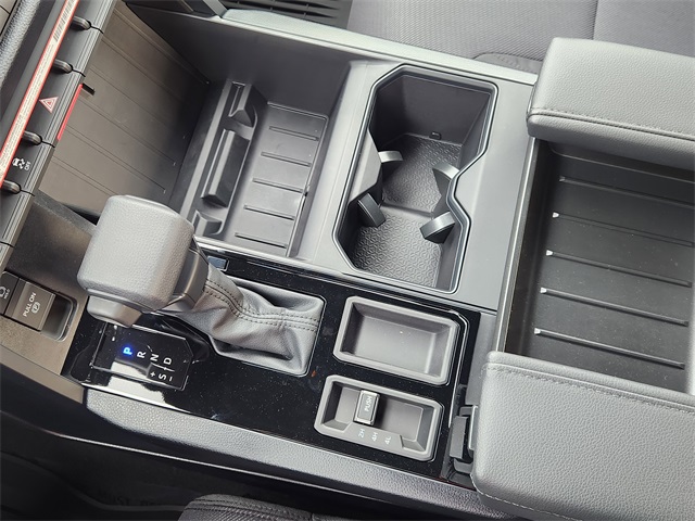 - Fixed center console with gated shift lever, driving controls, four cup holders, and center storage bin